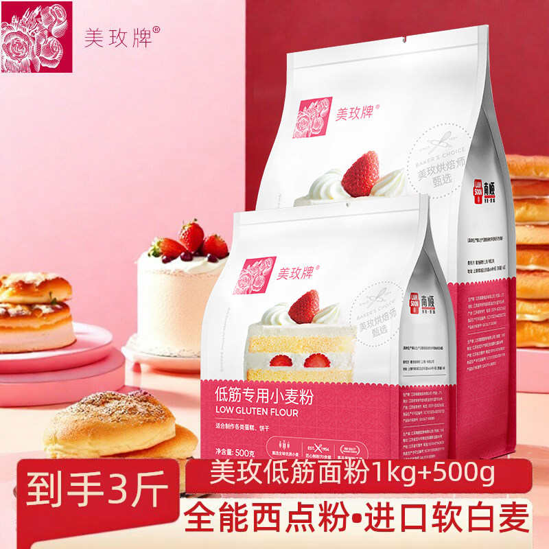 美玫牌低筋面粉1.5kg家用烘焙蛋糕小麦粉烘焙饼干蛋挞原料糕点粉