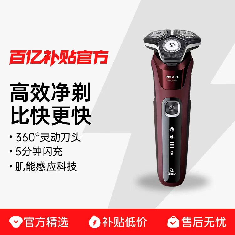 【政府补贴】飞利浦5X男士电动剃须刀刮胡刀胡须刀送便携新年礼物