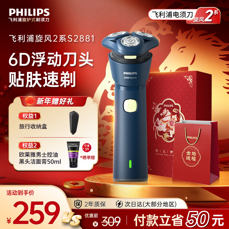 飞利浦男士电动剃须刀官方正品刮胡刀旋风2系S2881新品胡须刀礼物