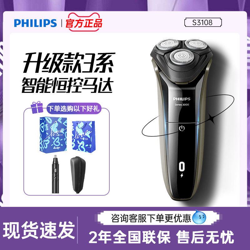 飞利浦剃须刀官方旗舰店正品新款电动男士刮胡刀送男友礼物S3108