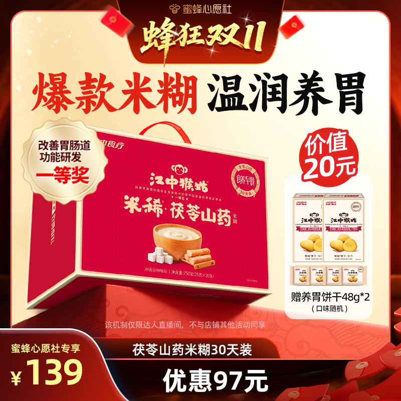 【林依轮直播间】江中猴姑米稀原味米糊30天养胃食品猴头菇早餐