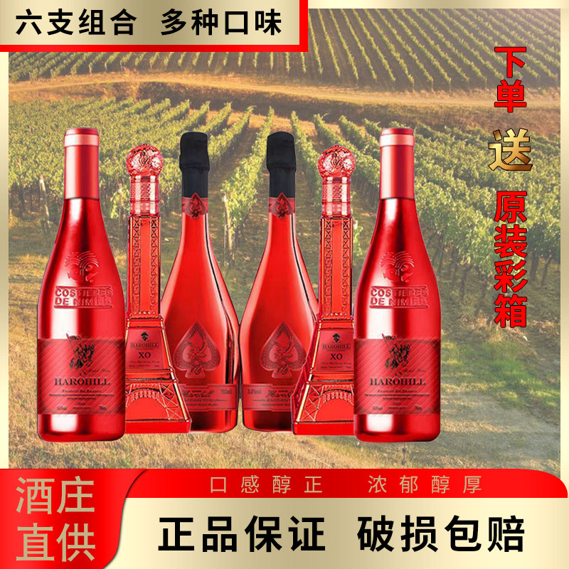 【6支礼盒】高档红酒节日送礼葡萄酒汽泡酒白兰地香槟整箱起泡酒