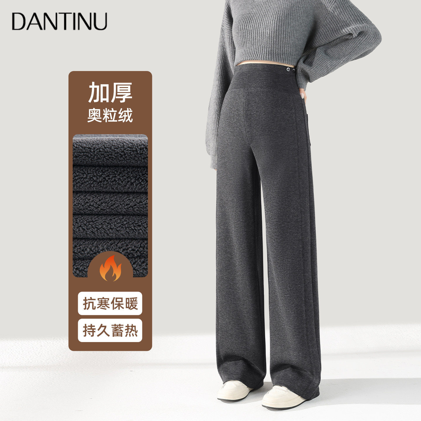 孕妇裤子冬季糯米羊绒休闲裤外穿加绒加厚阔腿裤女高腰直筒休闲裤