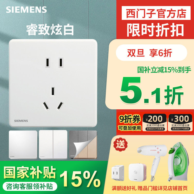 西门子开关插座面板致典雅白家用86型usb一开五孔16a多孔全屋套餐