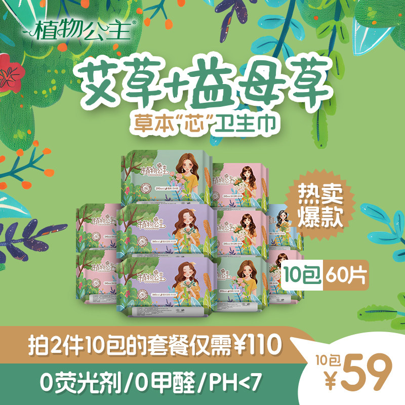 植物公主艾草益母草卫生巾官方旗舰店正品护垫透气日夜组合姨妈巾