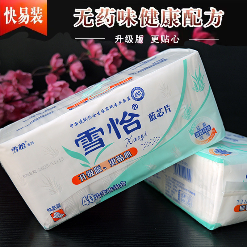 正品雪怡益母草女卫生巾日夜用组合装40片干爽透气网面整箱姨妈巾