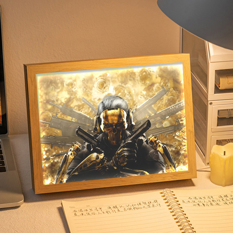 三角洲行动周边蚀金玫瑰红狼灯光画桌面摆件送男生生日礼品小夜灯