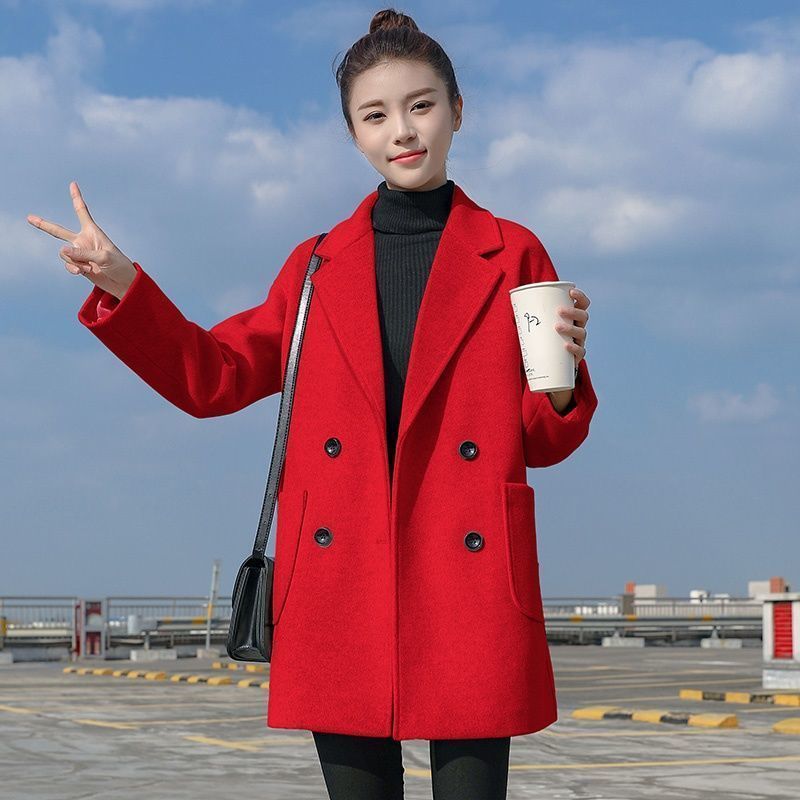 毛呢外套女秋冬2021新款韩版学生宽松中长款小个子茧型呢子大衣潮