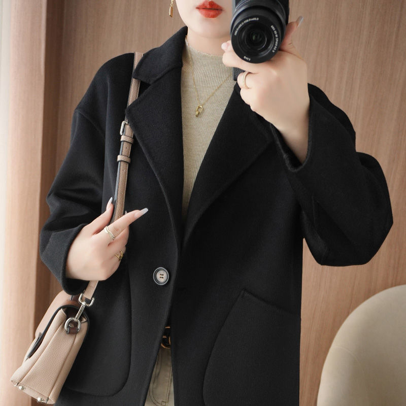 双面羊绒大衣女短款2022春秋新款宽松韩版茧型小个子羊毛呢子外套