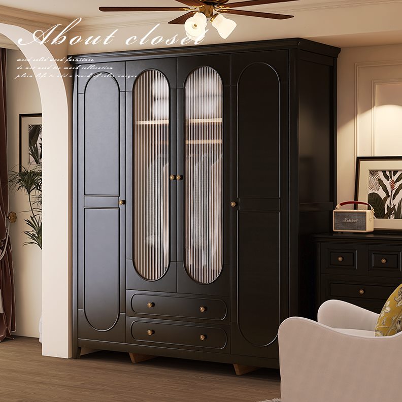收纳大衣柜美式衣柜实木四门黑色法式复古储物柜家用现代简约卧室