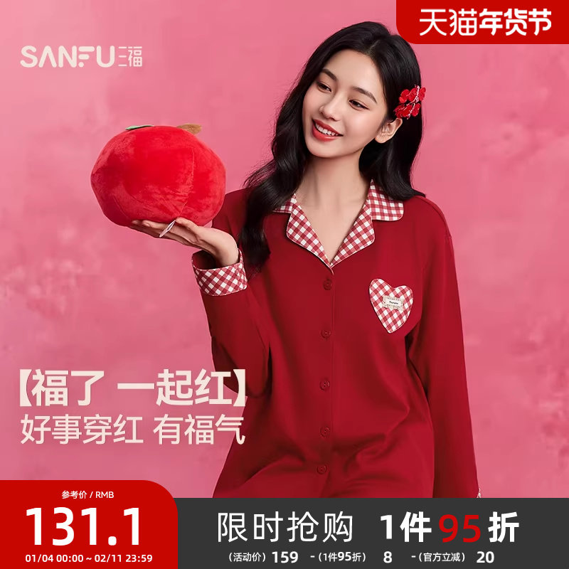 三福新年系列【姆明联名】春季本命年红色睡衣女纯棉家居服515093