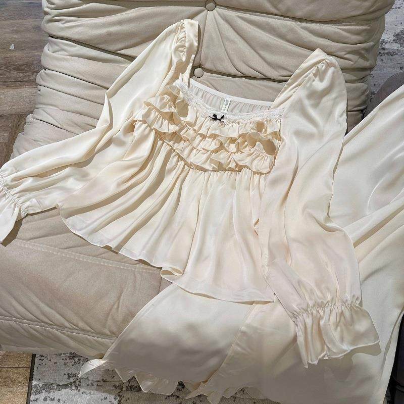 春季女睡衣法式宫廷风冰丝睡衣套装轻复古大方领丝绸家居服可外穿