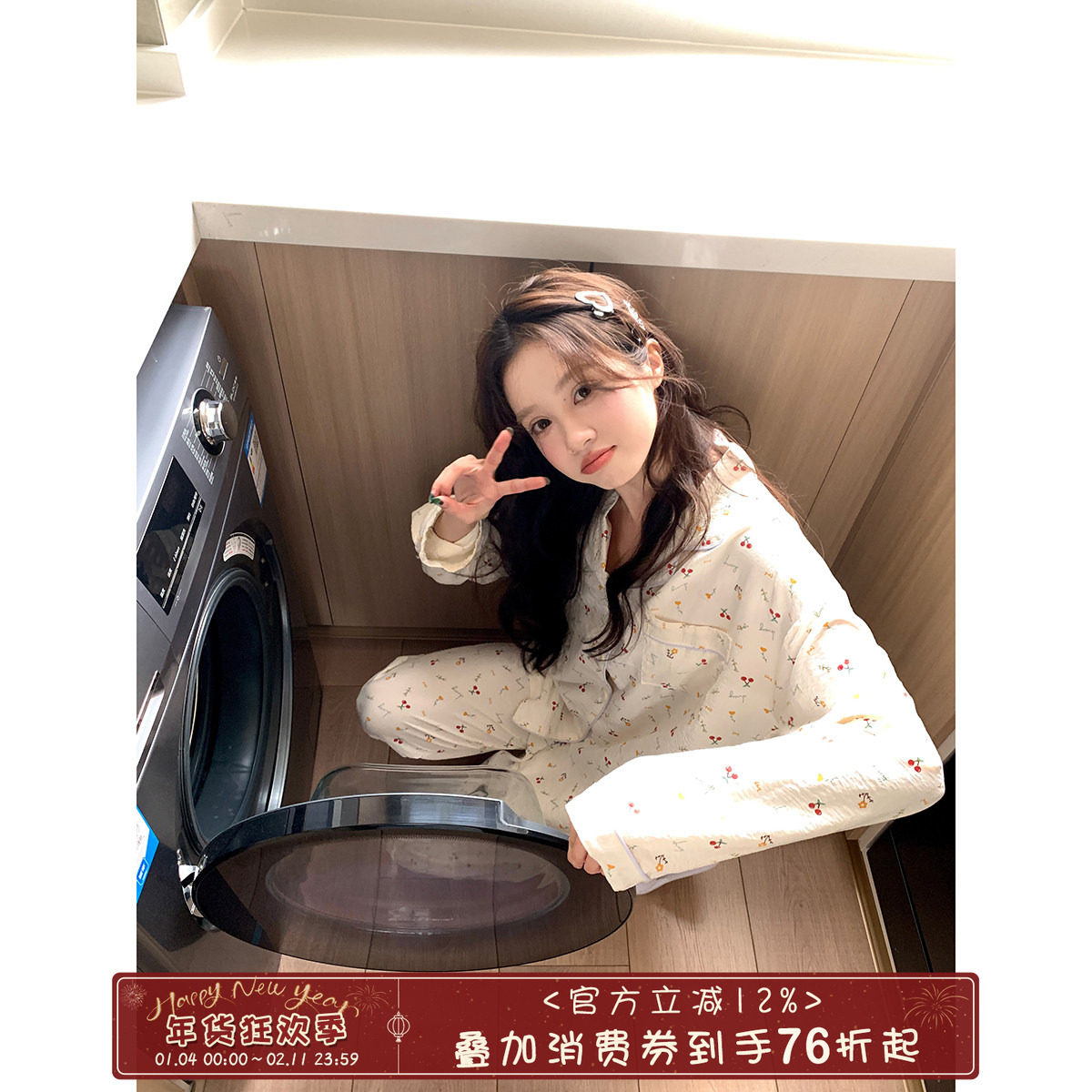 馨帮帮Homedress 甜美樱桃碎花睡衣女2025春季长袖长裤家居服套装
