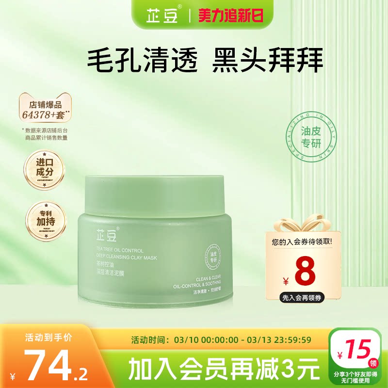 芷豆泥膜茶树控油深层清洁收毛孔改善黑白头舒缓补水涂抹面膜正品