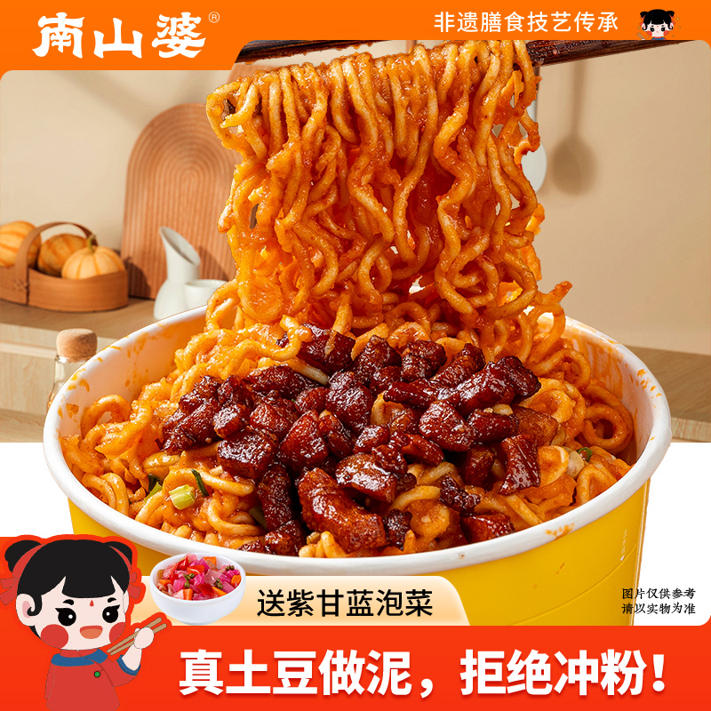 秒杀5桶丨南山婆贵州脆哨土豆泥火鸡面拌面桶装方便速食泡面宵夜