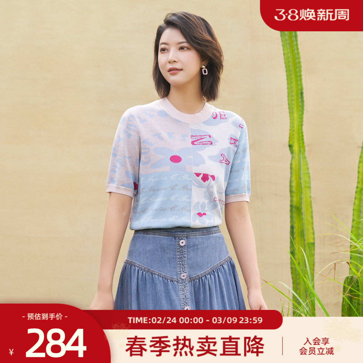 歌蒂诗夏季专柜新款简约减龄圆领亮丝针织衫短袖上衣8D14Z0639