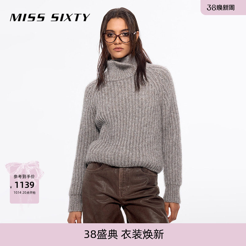 Miss Sixty含羊驼毛亮丝针织衫肌理感慵懒风高领毛衣保暖