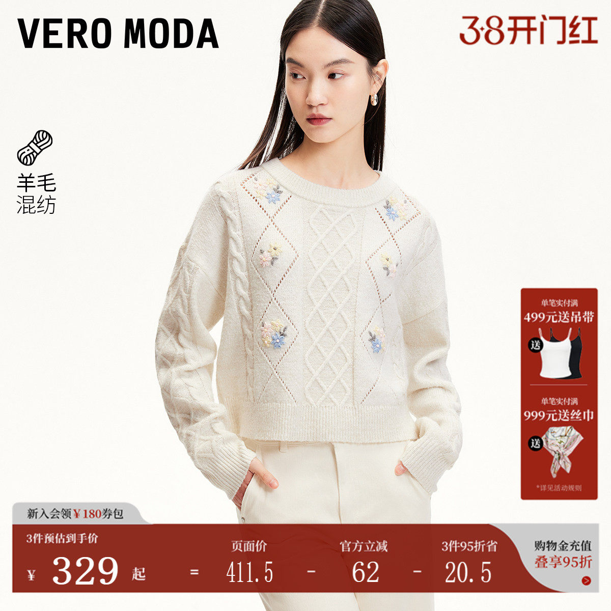 Vero Moda针织衫2025春季新款勾花镂空亮丝针织衫甜美325113004