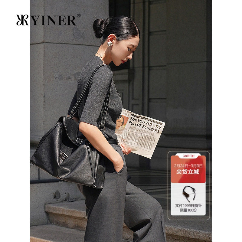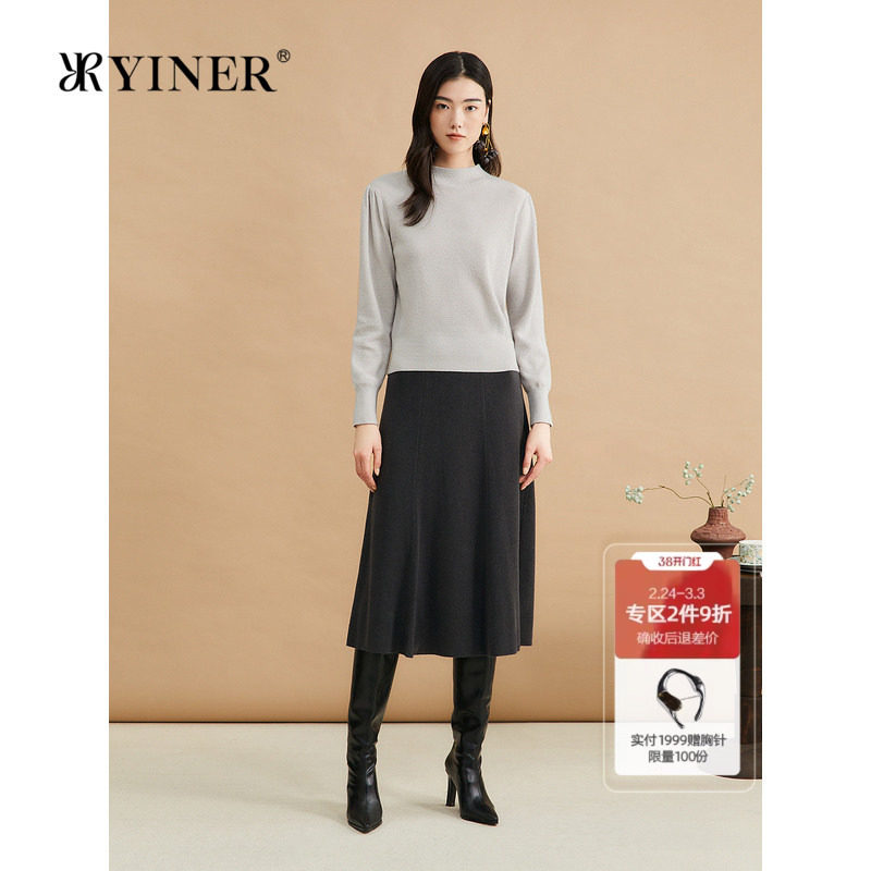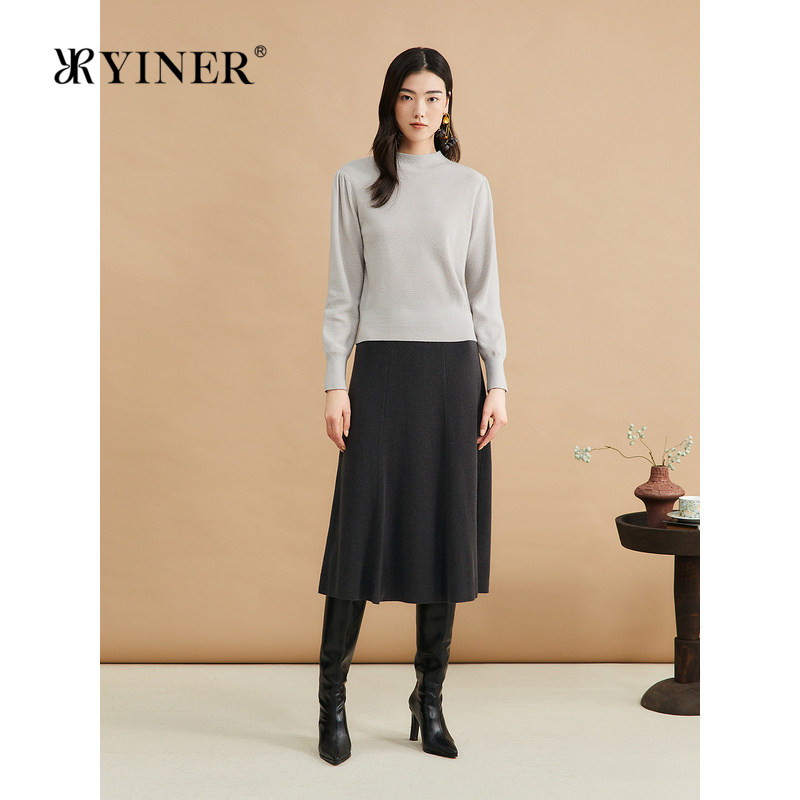 YINER音儿2025秋季新款法式智性灰美丽诺羊毛混纺亮丝针织衫套头