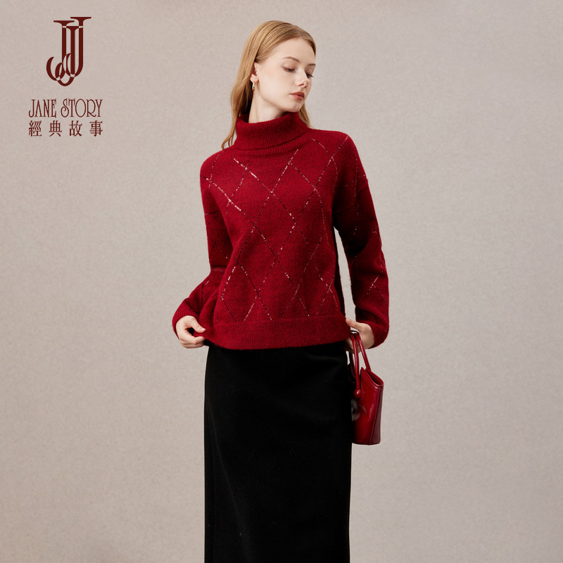 【绵羊毛】CADIDL卡迪黛尔商场同款春季穿搭半高领亮丝针织衫