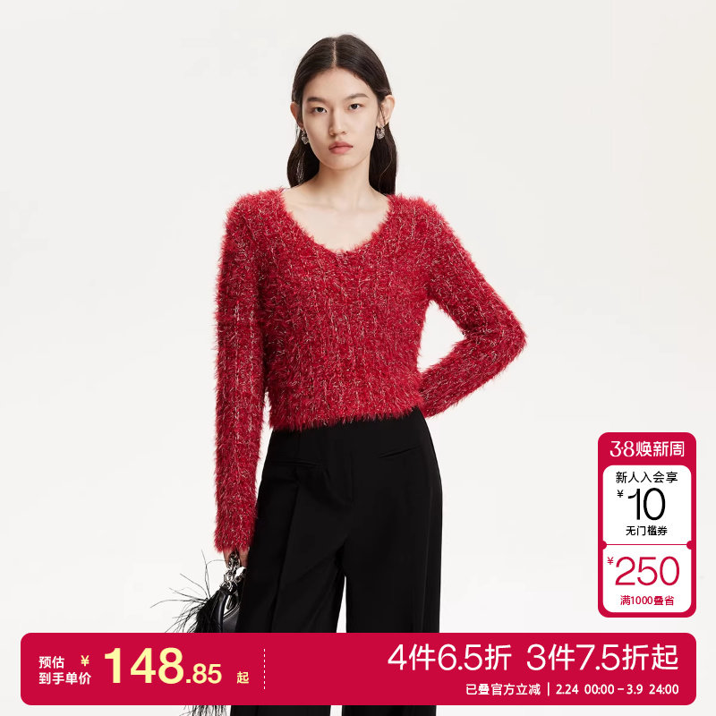 umisky优美世界冬季浮雕花纹亮丝针织衫套头短款毛衣NK4W1935