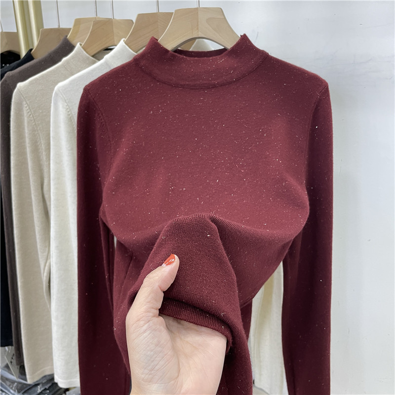 亮丝针织衫女韩版女装半高领套头纯色长袖内搭外穿打底衫上衣百搭