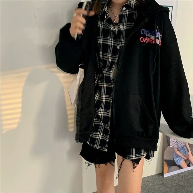 2020新款韩版秋冬装宽松加绒开衫卫衣女韩版ins连帽拉链外套ins潮