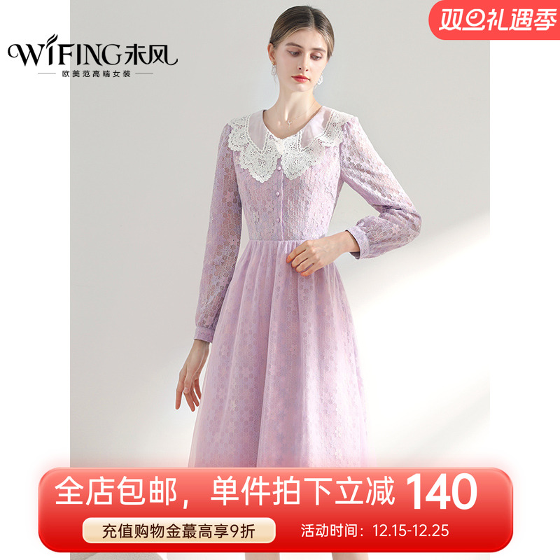 未风紫色蕾丝娃娃领连衣裙女秋2025秋装新款气质高腰减龄漂亮裙子