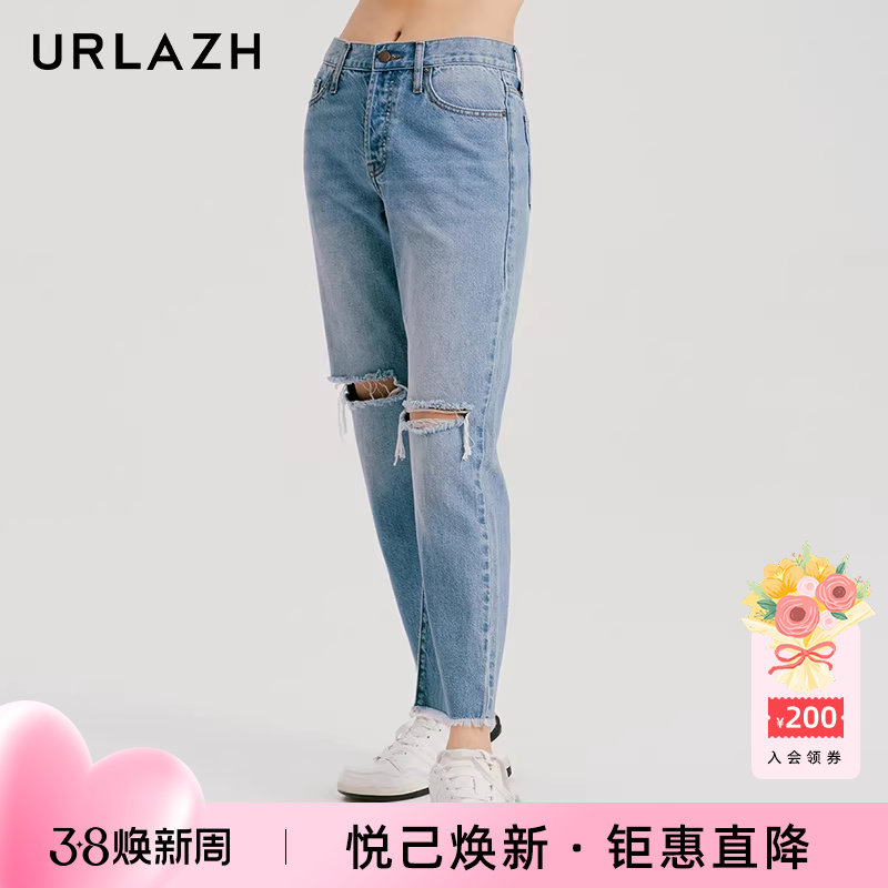 LAGOGO水洗做旧浅色破洞牛仔裤女拉谷谷2026年春季新款阔腿休闲裤