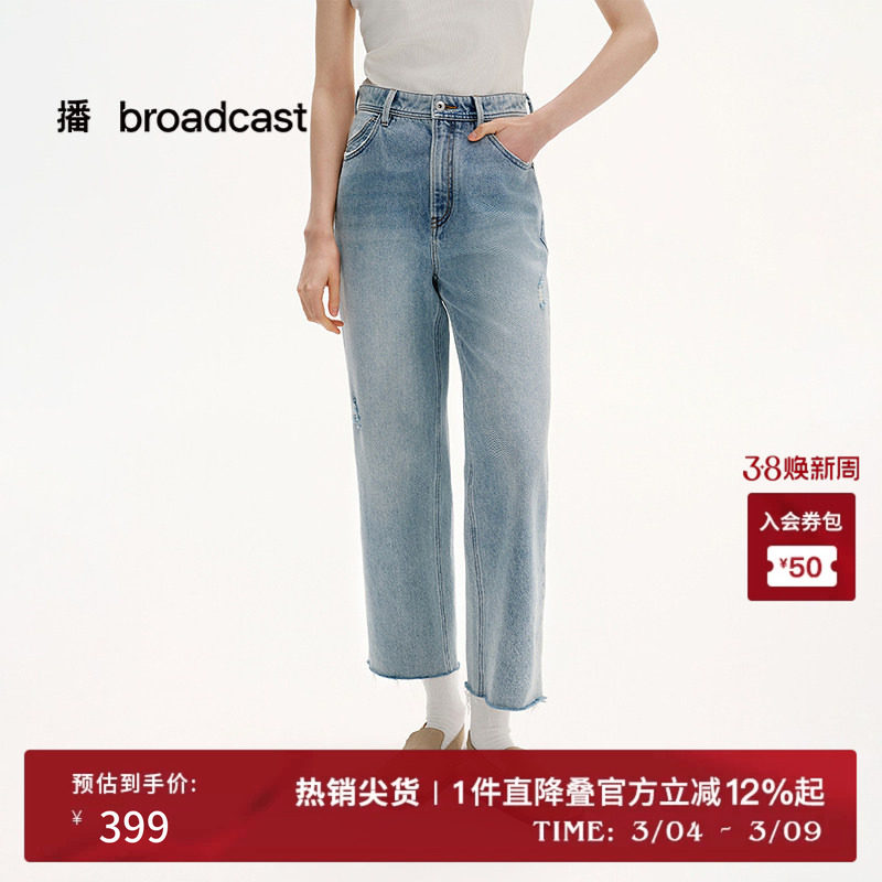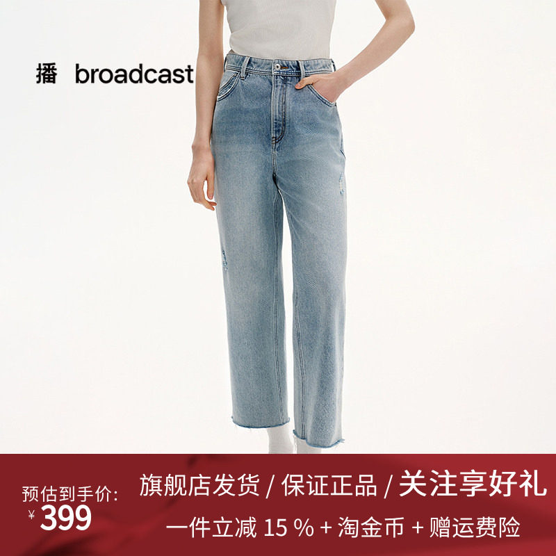 播商场同款高腰显瘦浅色破洞直筒牛仔裤女25夏季新款BDS2KD2662