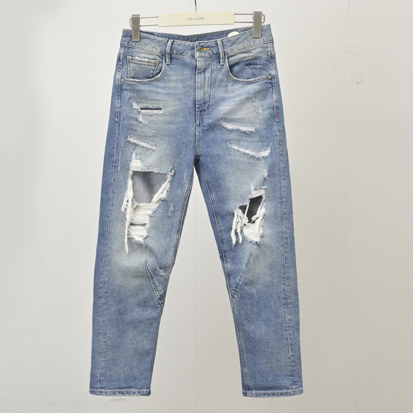 男女同款夏季破洞牛仔裤ABLEJEANS正品锥形裤小码男裤小脚裤浅色