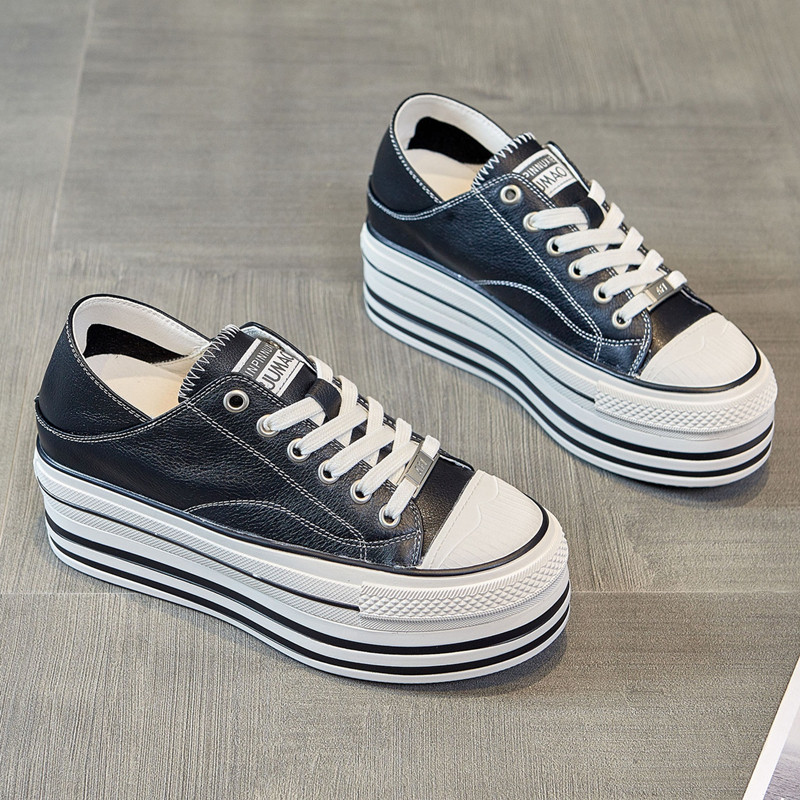 外贸撤柜断码真皮厚底小白鞋女秋季学生潮流板鞋韩版休闲运动单鞋