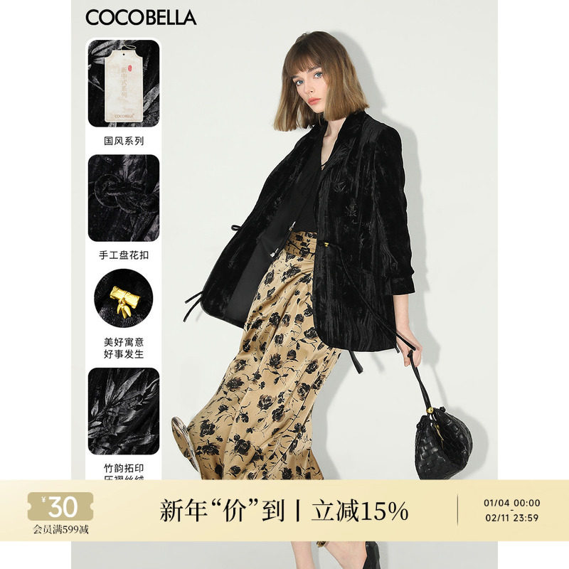 COCOBELLA新中式压褶丝绒西装女秋质感国风盘扣外套西服SI3007