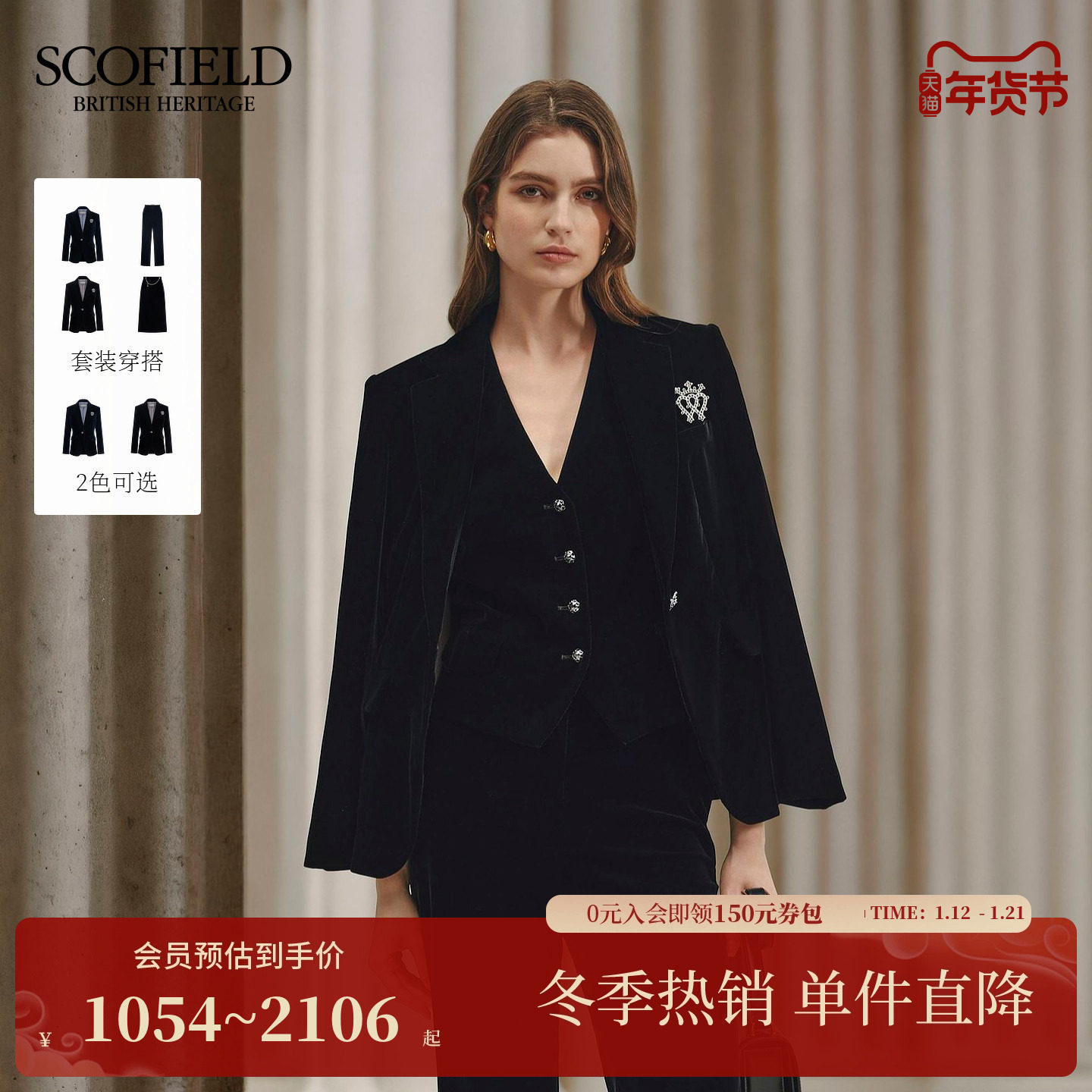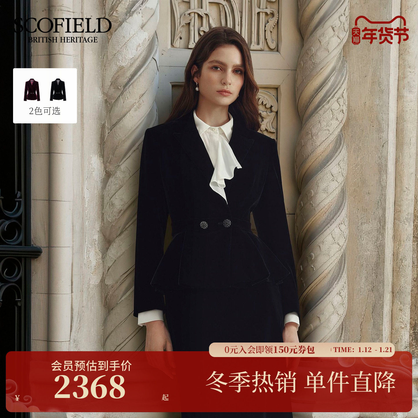 Scofield女装静奢宴会风丝绒西装收腰光泽感外套2025秋冬新品