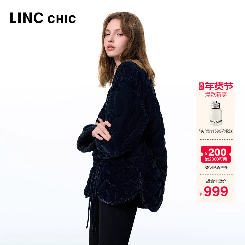 LINCCHIC金羽杰羽绒服女2025年秋季新款丝绒感羽绒外套女2116B