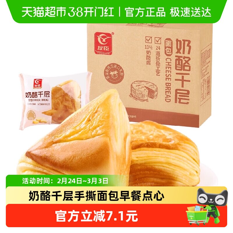 友臣官方奶酪千层面包休闲零食小吃健康食品营养速食学生早餐面包