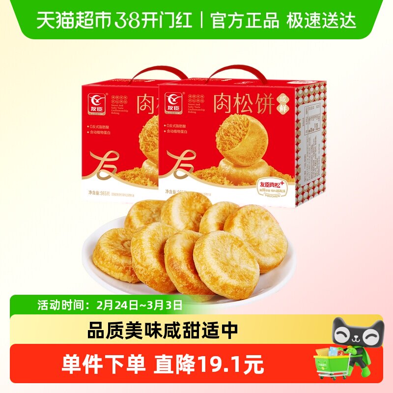 友臣原味肉松饼礼盒整箱充饥零食夜宵美食糕健康早餐食品饼干面包