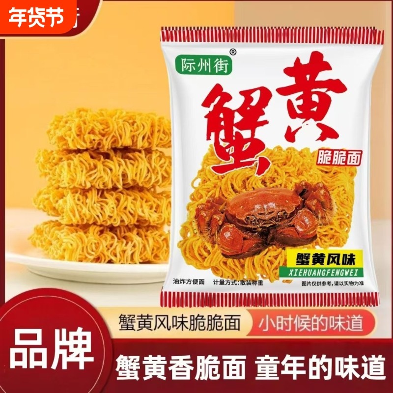 京辉蟹黄干脆面儿时零食怀旧蟹黄味掌心脆整箱批发干吃面休闲零食