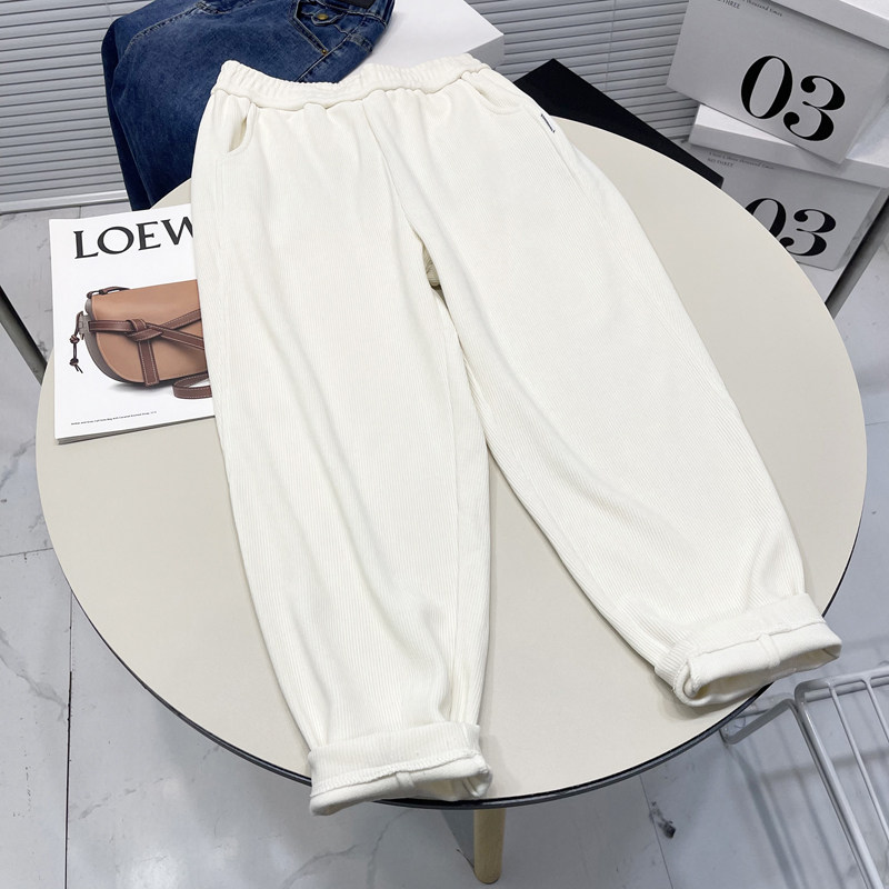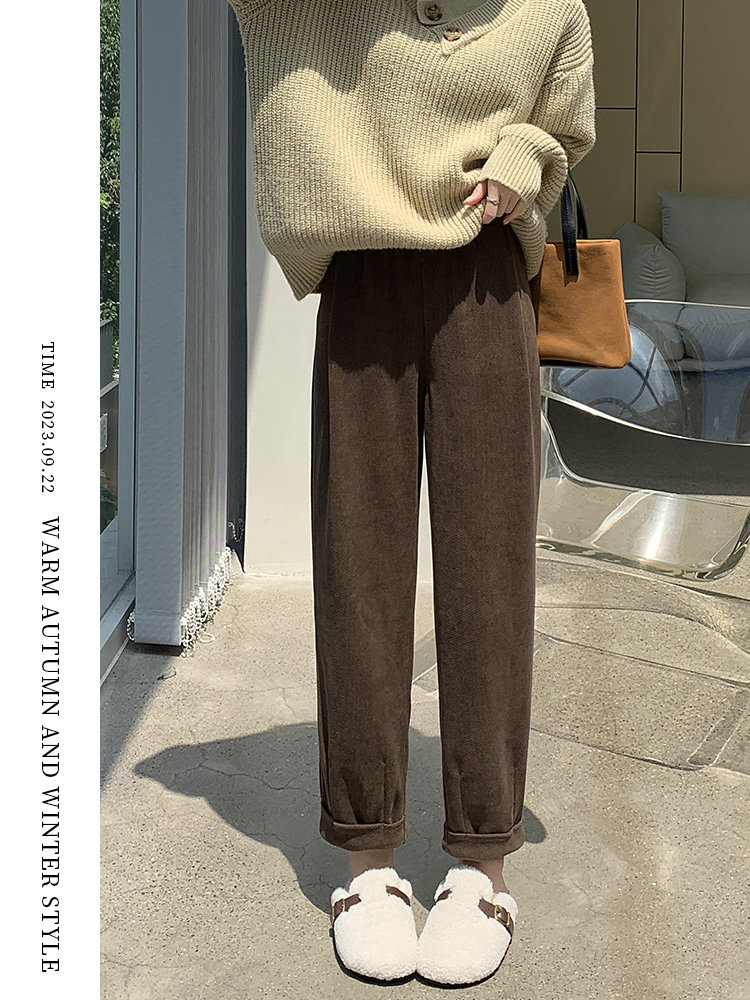2023秋冬高腰韩版宽松大码胖mm休闲复古灯芯绒加厚哈伦萝卜裤女潮