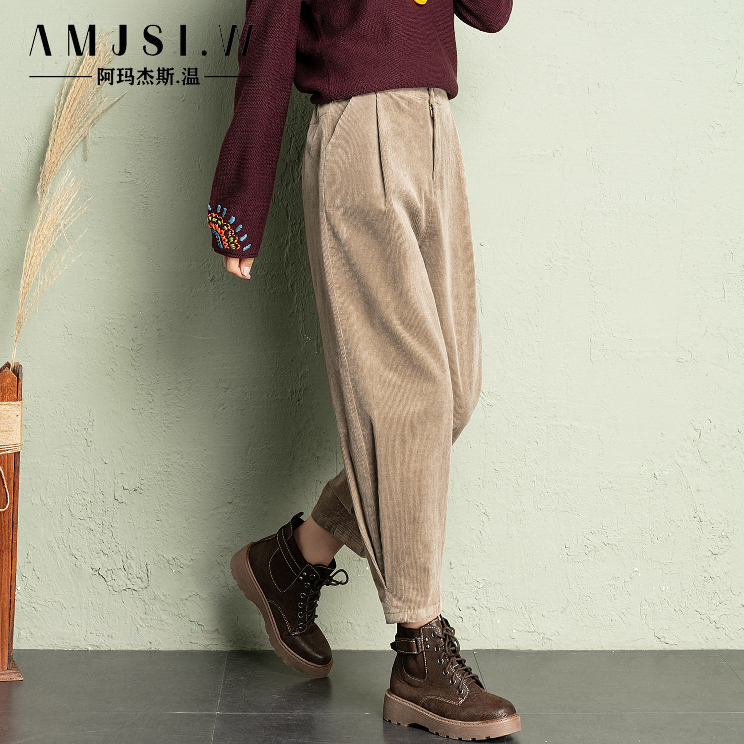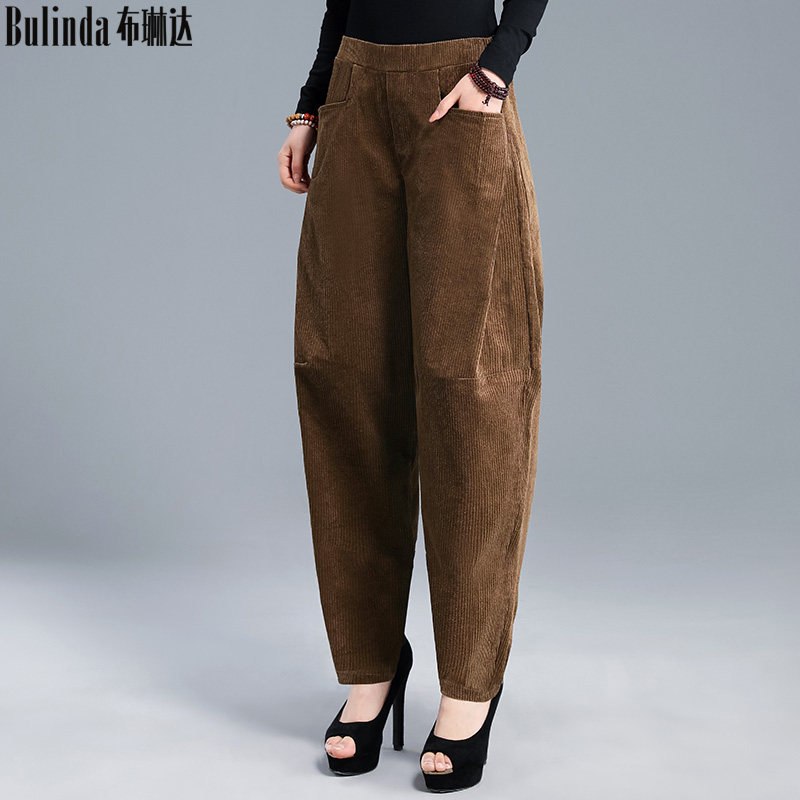 布琳达灯芯绒哈伦萝卜裤女2025秋冬新款宽松大码纯棉条绒灯笼裤子