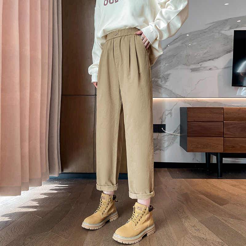 卡其色哈伦萝卜裤女2024秋冬新款高腰显瘦灯笼裤小个子老爹工装裤