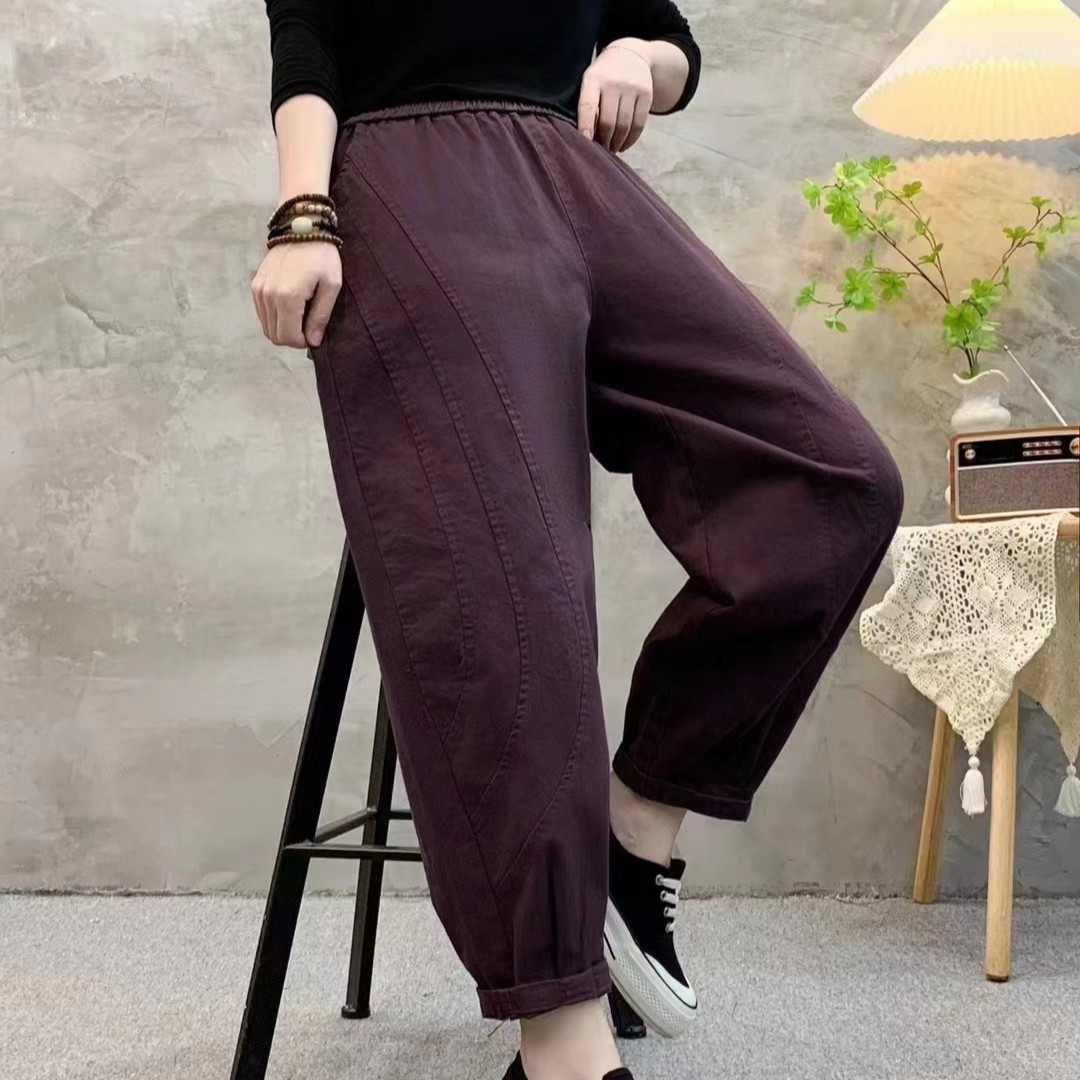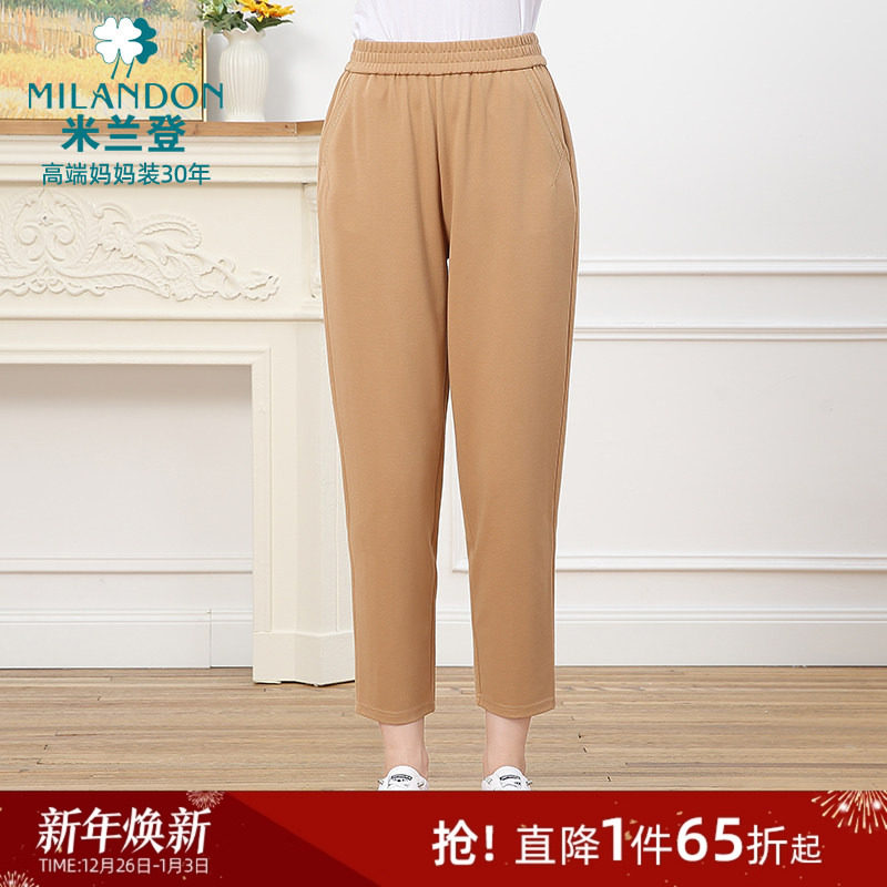 米兰登中老年妈妈装2025年秋季新款松紧腰休闲九分哈伦萝卜裤女士