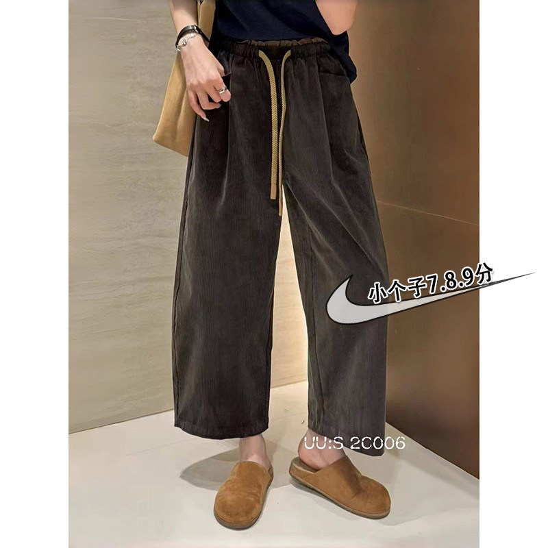 灯芯绒哈伦萝卜裤女高腰阔腿裤九分显瘦宽松大码条绒灯笼裤秋冬款