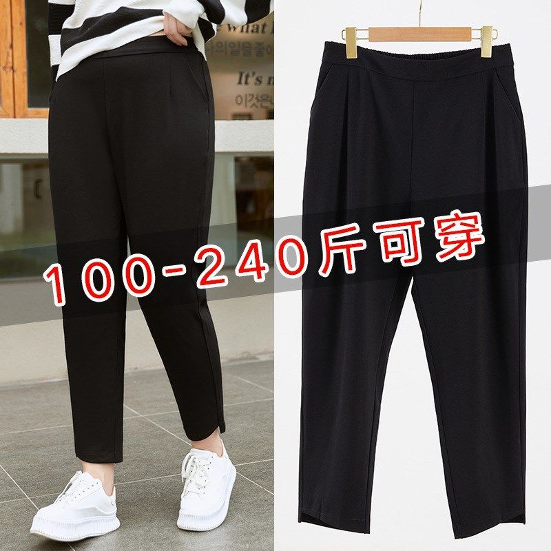 胖mm哈伦萝卜裤女秋季大码200斤高腰显瘦直筒宽松烟管九分休闲裤