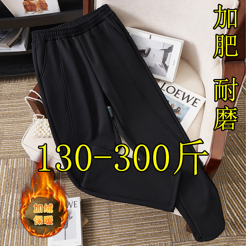 300斤特大码加绒哈伦萝卜裤女冬季200胖mm高腰加肥宽松显瘦休闲裤