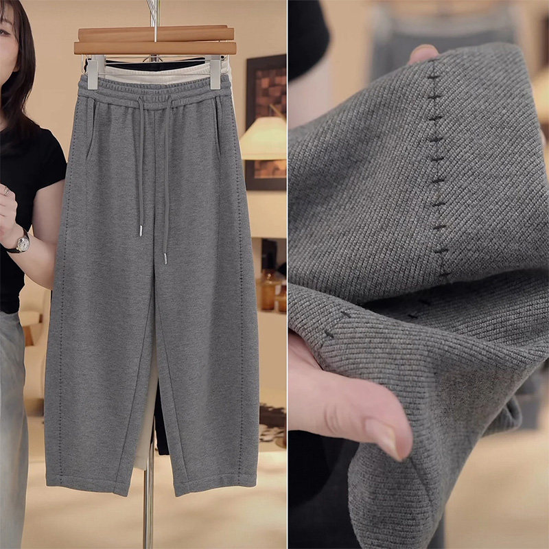 松紧腰加厚加绒休闲裤女秋冬2025新款裤子宽松显瘦萝卜哈伦裤冬季