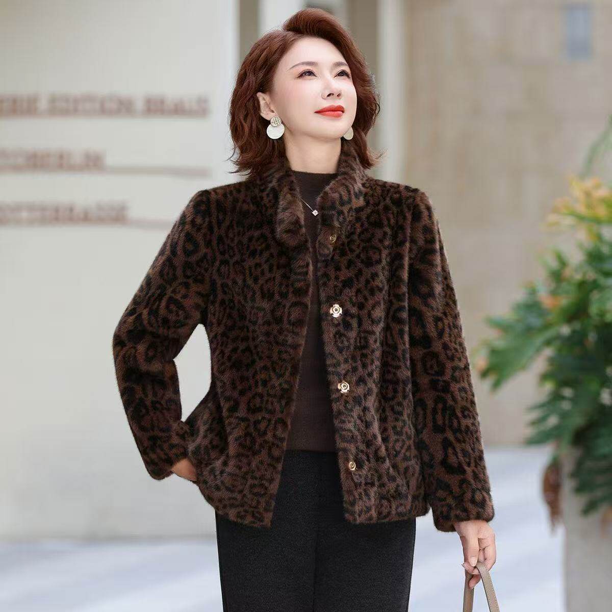 2025新款豹纹年轻妈妈冬装洋气翻领短款皮草外套女水貂绒皮毛一体