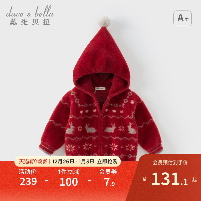 断码清仓6岁3女童毛衣水貂绒开衫女宝宝中长款秋冬装红色加厚外套