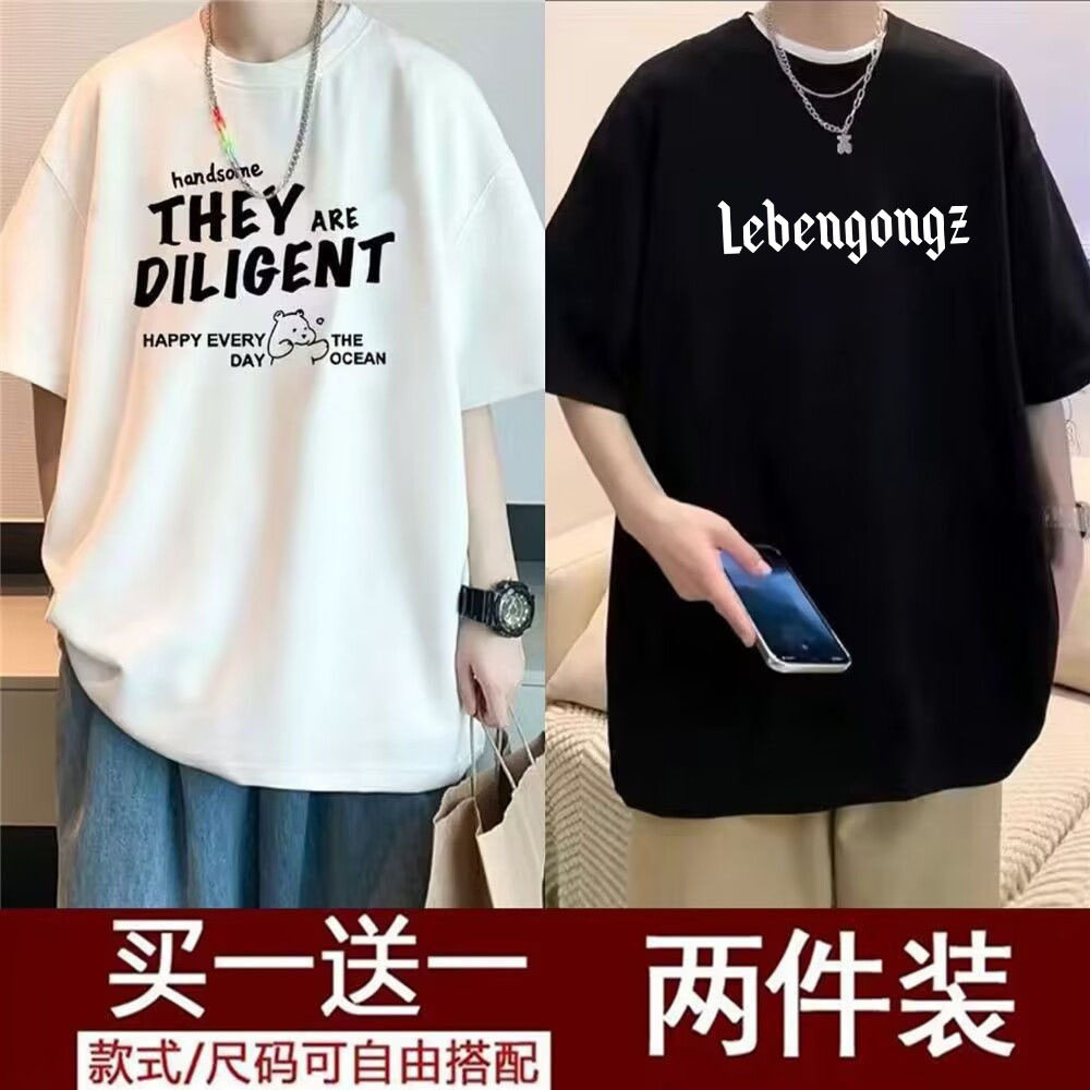 【买一送一】夏季短袖t恤男2024新款五分袖男装港风潮半袖男体恤