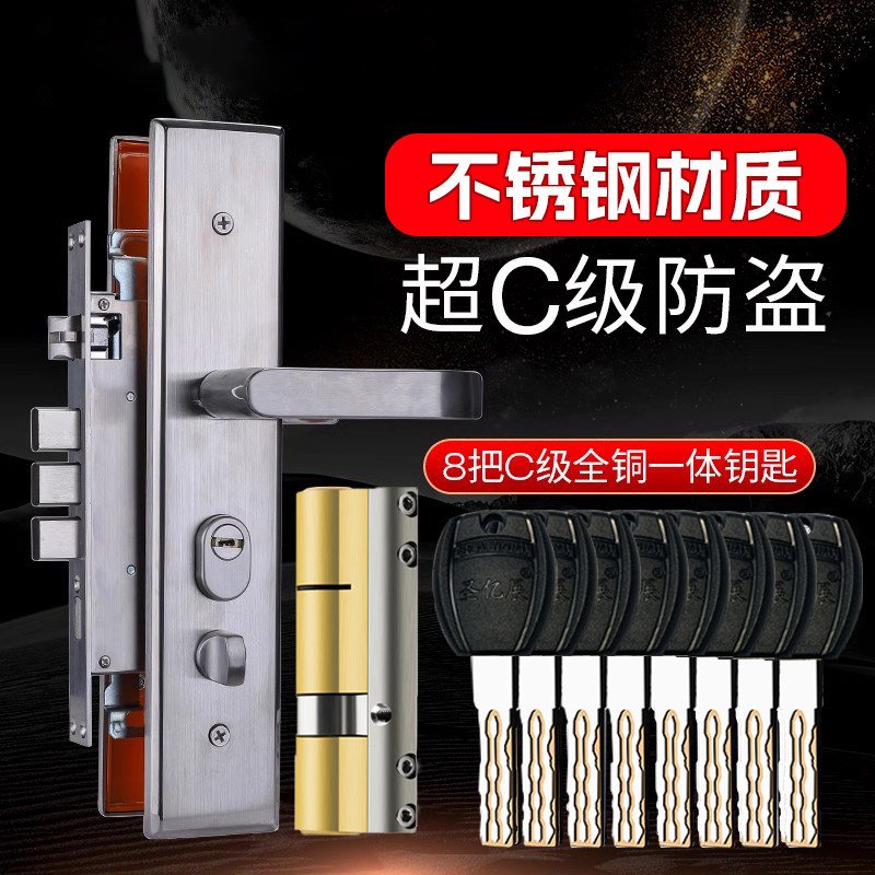 防盗门锁套装通用型不锈钢C级锁入户门大门锁木门锁加厚机械锁具
